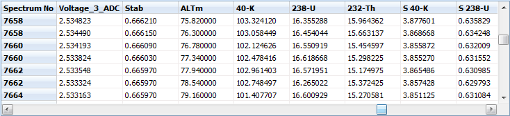When data is being imported, all data is being synchronized to the gamma spectra. In other words, all data is connected to the gamma spectra, giving one row of data for each gamma spectrum. If data has not been received at the same moment in time, interpolation is applied. Each spectrum is given a unique number.
