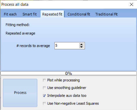 | Conditional fit | Average a number of records until a specified uncertainty is reached | |