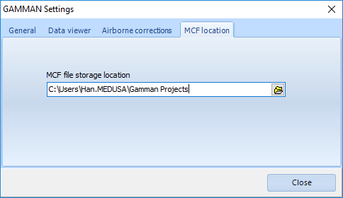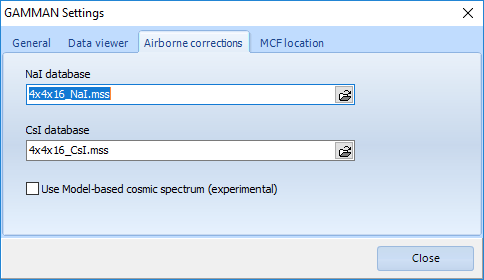 For airborne corrections, Gamman uses libraries that are normally stored together with the program files onder "C:\Program Files (x86)\Medusa Radiometrics BV\GAMMAN". However, you can relocate these files to another spot. Their paths can be set via the settings: