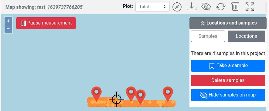 | Open the locations and sample panel (only visible on the project page) |