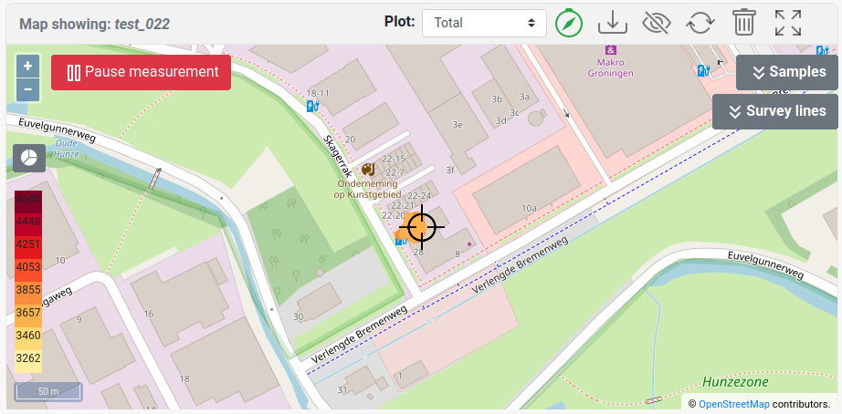 In a project, it might be desirable to take samples, either by doing a long measurement or by taking physical samples and sending these to a laboratory for analysis. The samples should be a good reflection of the variation in the area. The locations tool is used to calculate the best position for taking samples. This location suggestion takes the variation and size of the measured project into account.