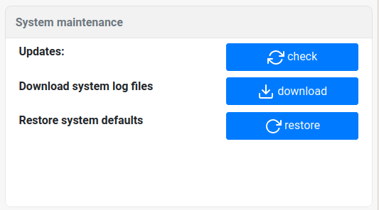| Updates | Open the updates page to apply system updates or patches |