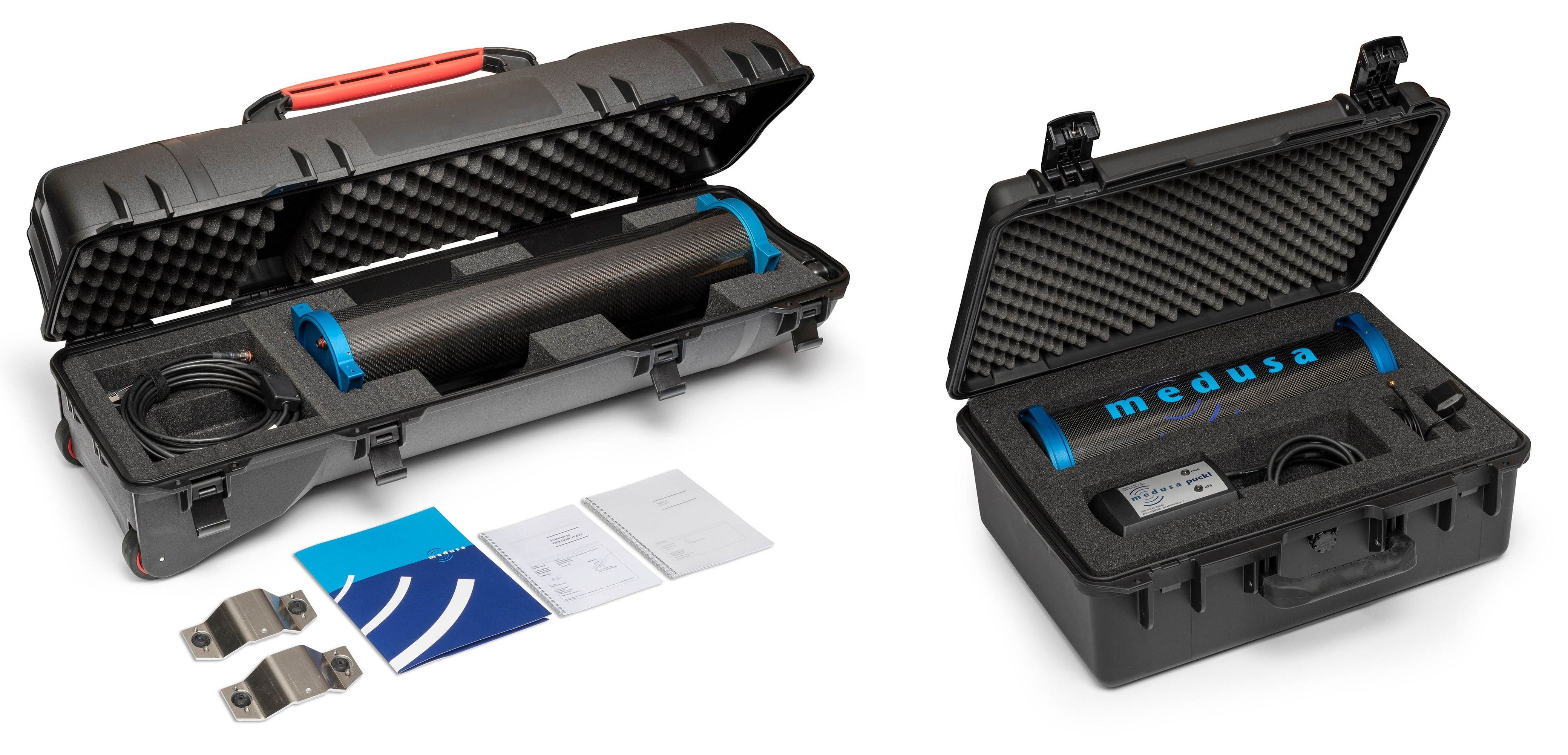 First, we want you to note that you have a delicate instrument in your hands. Our gamma-ray spectrometers contain a (relatively) fragile scintillation crystal at their core. This crystal and the device's electronics should always be handled with care. Dropping, hitting, or significant impact on the detector may result in the breaking of this crystal. Medusa has optimized the weight of the spectrometer systems while implementing a shock-absorbing layer that keeps the crystal stable. However, improper use could lead to breaking an element in the system. Therefore, it is crucial that the detector is handled with care and that proper preparation has been taken before working with this system.