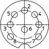 Both connectors share the same pin-out. That is, pin 1 of the Lumberg connector is connected to pin 1 of the RJ45 connector, etcetera. Note that pin 4 and pin 5 have the same function, but they are not connected. The same applies for pin 7 and 8.