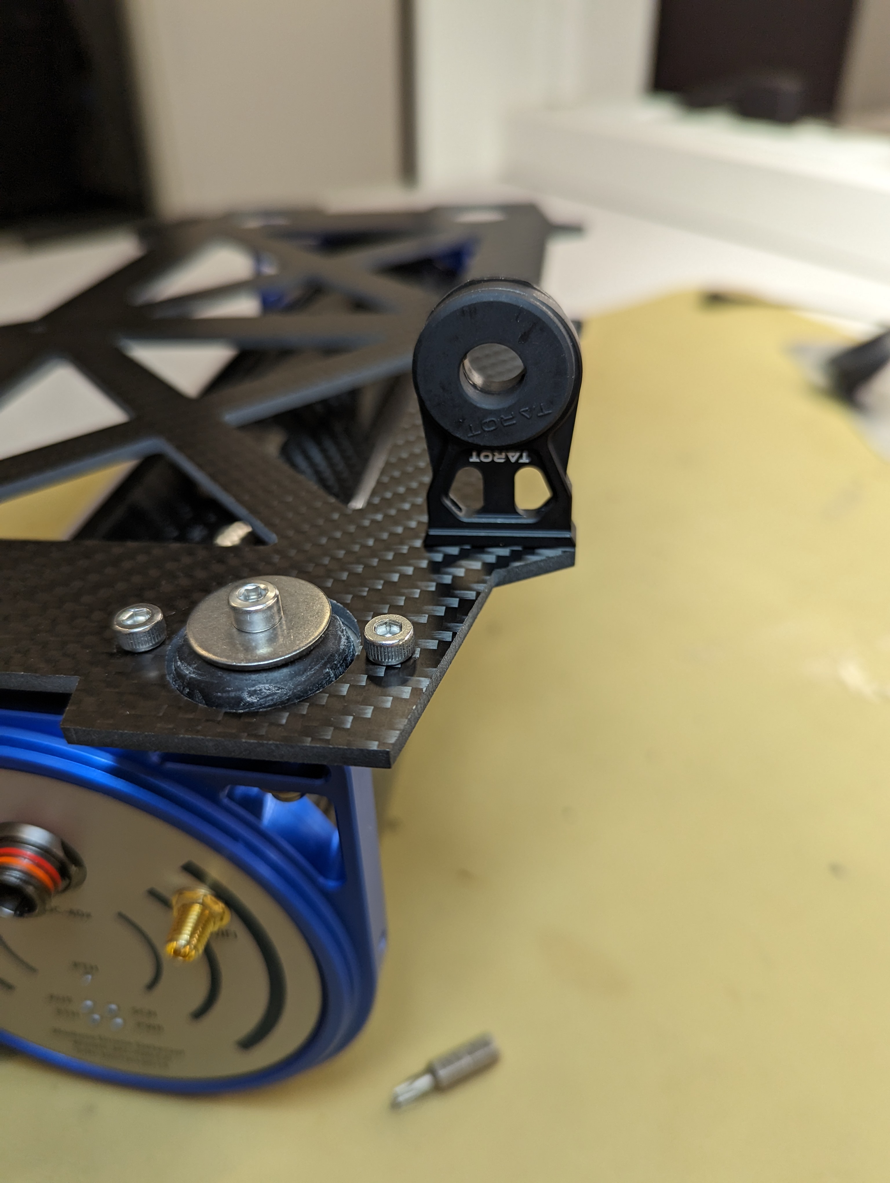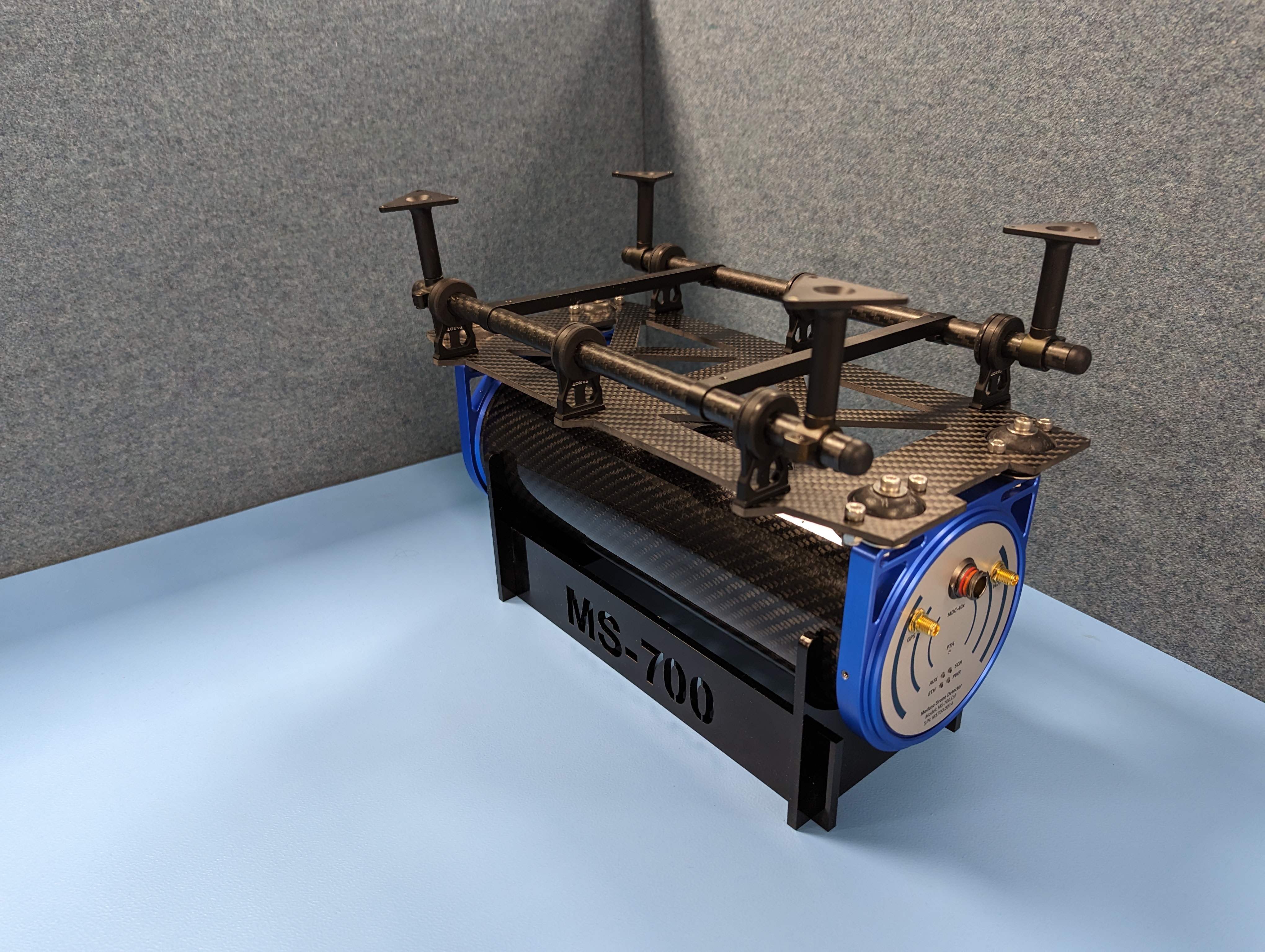 The attached pictures show examples of how the MS-350/700/1000 MSB-301 drone mounts are assembled. This drone mount is a carbon fiber plate that can easily be customized to be attached under many drone frames.
